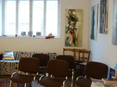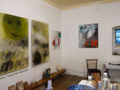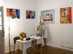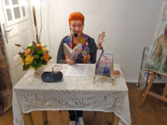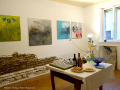 Sie hatten eher an einen Mädelsabend gedacht, Lisi Deutsch, Helga Petri-Basaran und meine Autorin, sie hatten schon länger nichts miteinander unternommen und die Gelegenheit war günstig. Die Ateliergalerie war für eine Ausstellung der beiden Damen im Rahmen von „Kunstgenuss und Martiniloben“ sowieso geöffnet und da könnte sich doch leicht ein bissl Zeit ergeben, um zu tratschen und das eine oder andere Glaserl miteinander zu trinken. Ein paar liebe Freunde wurden auch erwartet und dann wär eine gemütliche Intimlesung grad das richtige, um Spaß mit mir zu haben.