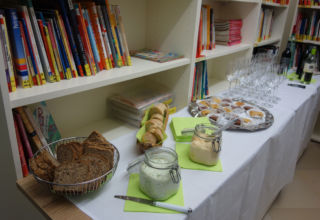 Heute die wesentlich kargere Bücherei in Bruck, die aber dennoch eine unglaublich gemütliche Atmosphäre hat – was mit Sicherheit auch an der Persönlichkeit der Büchereileiterin liegt. Gesteckt voll, sämtliche Notplätze ebenfalls besetzt. Und das Publikum: einfach zum Knutschen.
